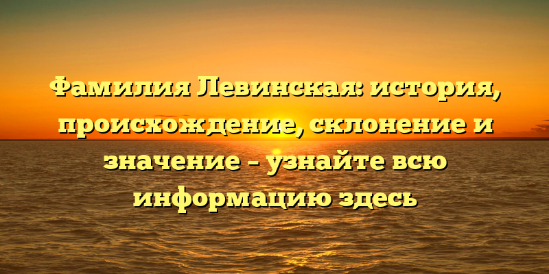 - Фамилия Левинская: исследуем происхождение, историю, склонение и значение