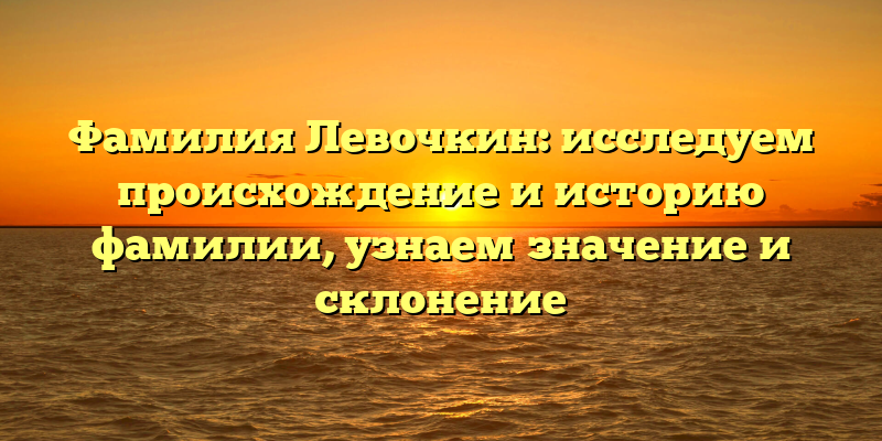 - Происхождение фамилии Левочкин: история, значение и склонение в разных языках