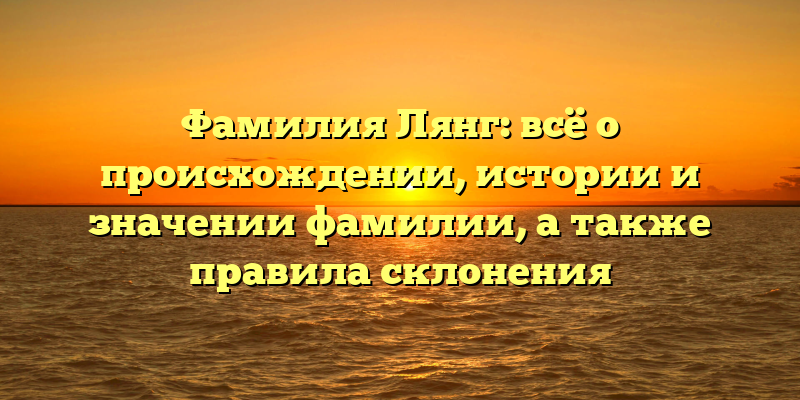 - Лянг: происхождение, история и значение фамилии, а также правила склонения — полное руководство