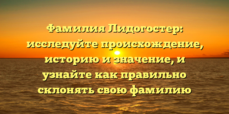 Фамилия Лидогостер может показаться необычной и редкой, но она имеет интересное происхождение и занимательную историю. В этой статье мы рассмотрим все аспекты связанные с этой фамилией, начиная с ее происхождения и заканчивая правильным способом ее склонения.