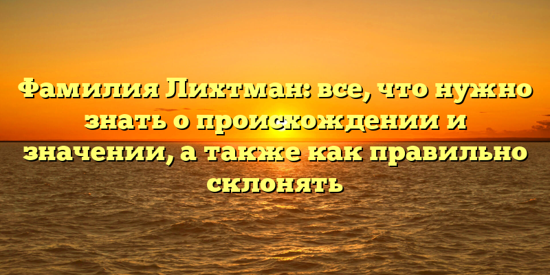 - Раскрываем тайны фамилии Лихтман: происхождение, значение и склонение в одной статье