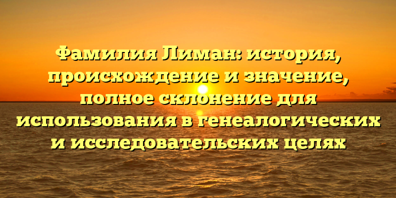Раскрываем тайны Фамилии Лиман: история происхождения и значения, полное склонение для генеалогических и исследовательских целей.