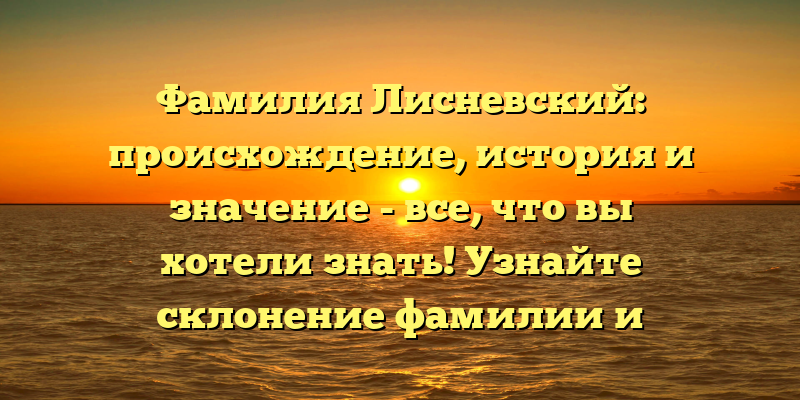 Откройте тайны происхождения и значения фамилии Лисневский: узнайте о склонении и источниках в новой статье!