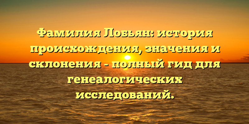 - Узнайте всё о фамилии Лобьян: история происхождения, значения и склонения — экспертный гид для генеалогических исследований.