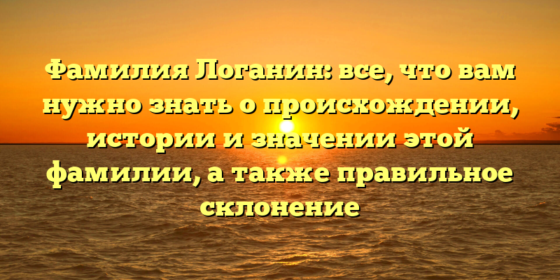 - Раскрытие тайн фамилии Логанин: происхождение, история, значение и правила склонения в одной статье