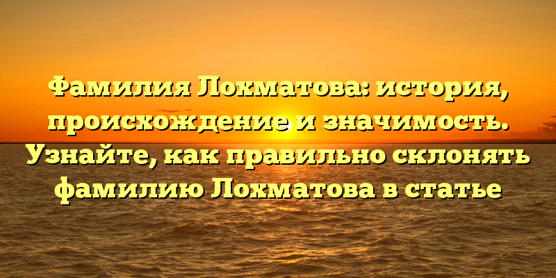 В этой статье мы расскажем о том, как правильно склонять фамилию Лохматова и что она означает, а также о том, какой исторический и культурный контекст связан с этой фамилией.