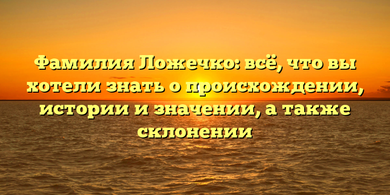 Фамилия Ложечко — одна из наиболее распространенных в Украине. Она имеет многовековую историю, которая неразрывно связана с этой страной. Если вы хотите узнать о происхождении, истории и значении фамилии Ложечко, а также о её склонении, эта статья для вас.