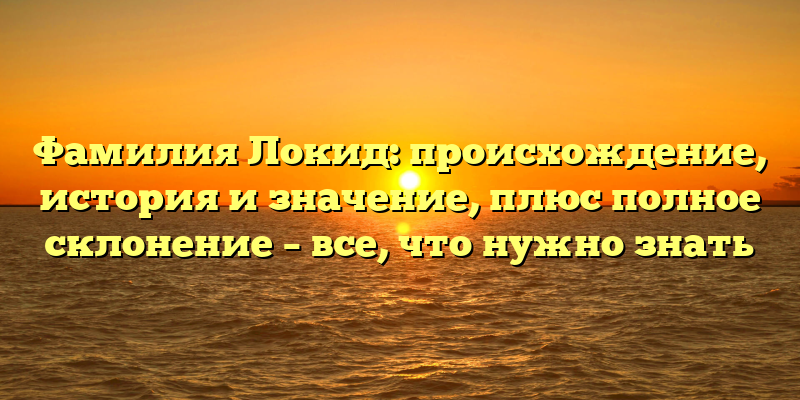 - Фамилия Локид: история происхождения, значение и полное склонение – полезная информация для генеалогов и историков