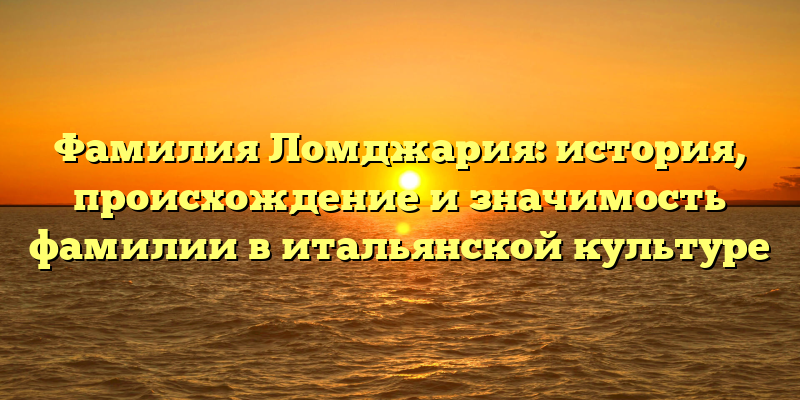 - Фамилия Ломджария: история, происхождение и культурное значение в Италии.