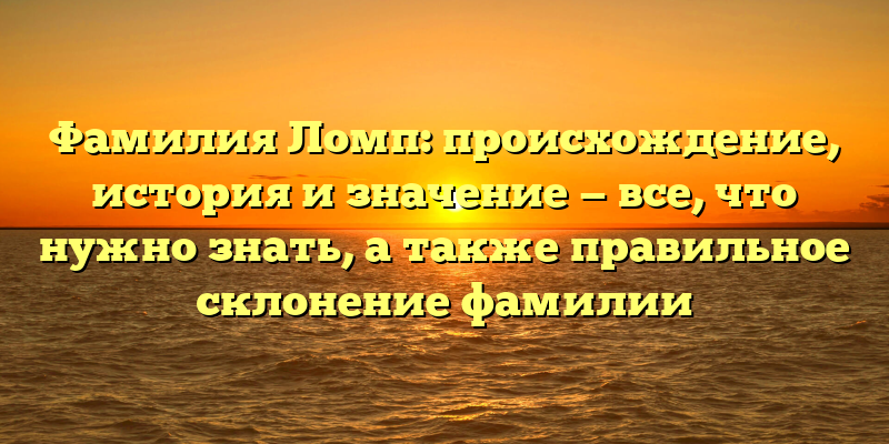 - Фамилия Ломп: происхождение, история и значение — полное руководство по правильному склонению фамилии для русского языка