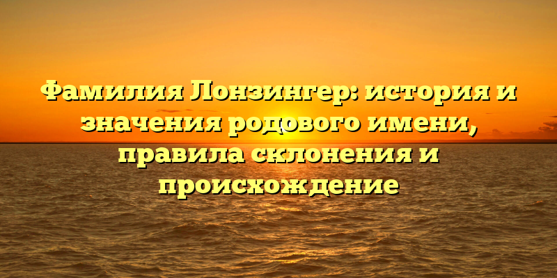 - Фамилия Лонзингер: происхождение, значения и правила склонения – глубокий взгляд на родовое имя