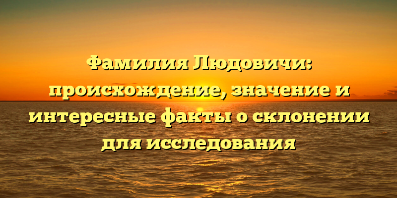 В этой статье мы рассмотрим происхождение и значение фамилии Людовичи, а также изучим интересные факты о ее склонении. Если вы интересуетесь исследованиями и происхождением имен, то этот материал станет для вас настоящим открытием и погружением в увлекательный мир истории и лингвистики.