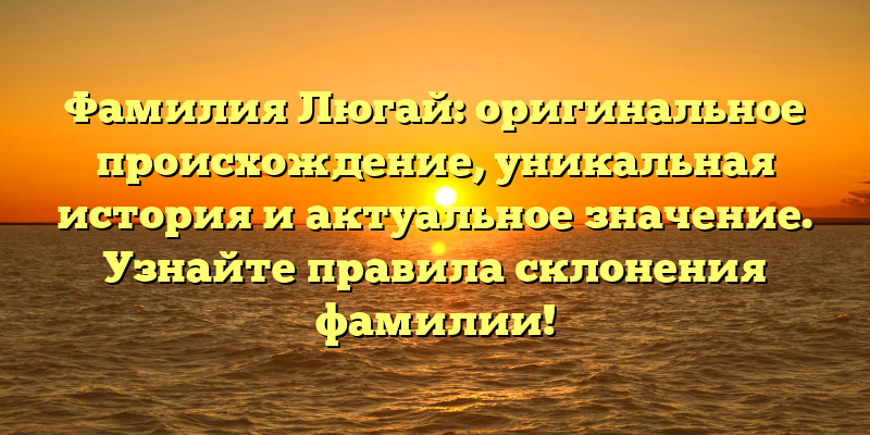 Фамилии — это важная составляющая нашей личности. Они отражают наше происхождение, могут давать указания нашего социального статуса и имеют важное значение при общении с другими людьми. Одна из таких фамилий — Люгай.