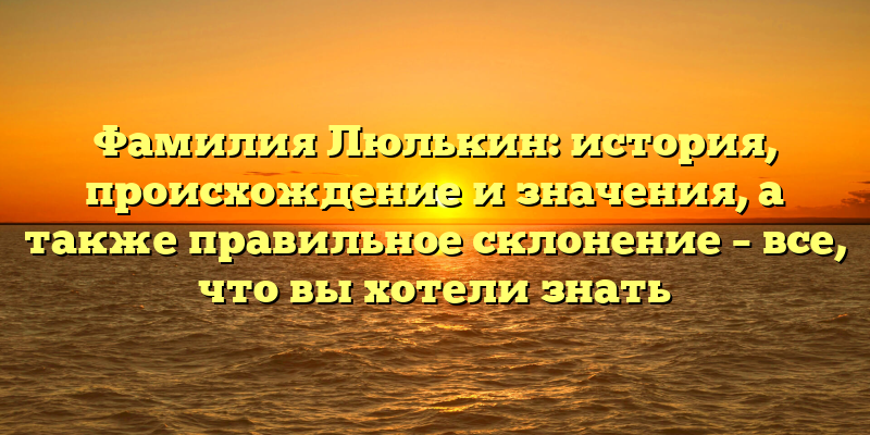 Узнайте всё о фамилии Люлькин: происхождение, история и правильное склонение в одной статье.