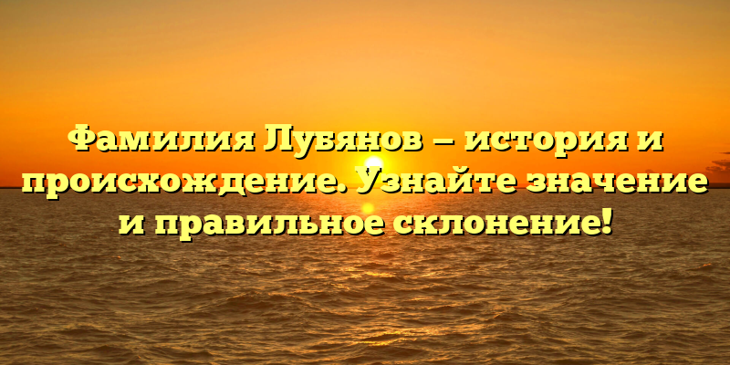 - Фамилия Лубянов: история, происхождение и правильное склонение – все, что нужно знать!