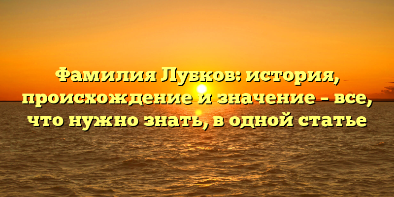 - Фамилия Лубков: происхождение, история и значение в одной статье – узнайте все о своих корнях