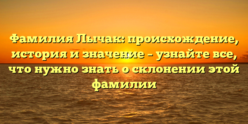 - Фамилия Лычак: происхождение, история и значение – узнайте, как правильно склонять эту фамилию с нашей подробной статьей