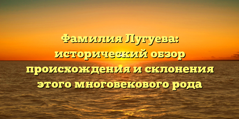 В статье мы рассмотрим происхождение и историю рода Лугуевых, а также склонение фамилии и другие детали, связанные с использованием этой важной и узнаваемой фамилии.