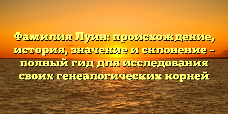 Если вы ищете информацию о фамилии Луин, вы попали по адресу. В данной статье мы расскажем о происхождении и истории фамилии, а также подробно рассмотрим склонение и значение этого имени.