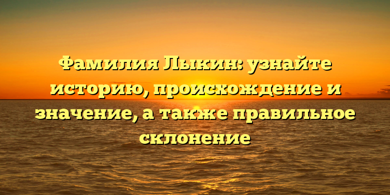 Лыкин – это одна из самых известных фамилий в России. Ее носители заслужили славу не только в науке и культуре, но и в политической жизни страны. В этой статье мы расскажем о происхождении фамилии Лыкин, ее истории и значении, а также дадим рекомендации по правильному склонению.