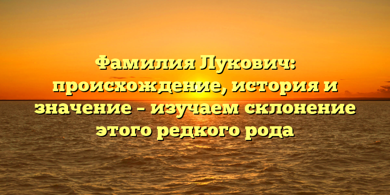 Исследуем происхождение и значение фамилии Лукович: узнаем все о редком роде и его склонении.