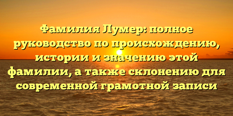 Узнайте все о фамилии Лумер: происхождение, история и значение идеально описаны в этом полном руководстве, а также правильное склонение для современной грамотной записи.