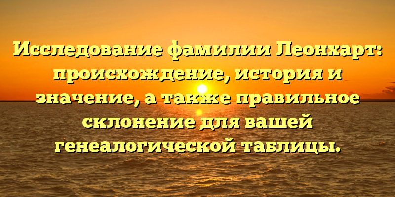 В данной статье мы рассмотрим происхождение и историю фамилии Леонхарт, а также дадим рекомендации по правильному склонению фамилии для использования в генеалогической таблице.