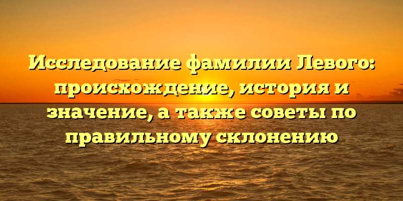 - Раскрываем тайны фамилии Левого: происхождение, история и значение, а также важные советы по правильному склонению