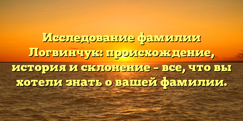 - Раскрываем тайны фамилии Логвинчук: происхождение, история и склонение – узнайте все о своем роде!