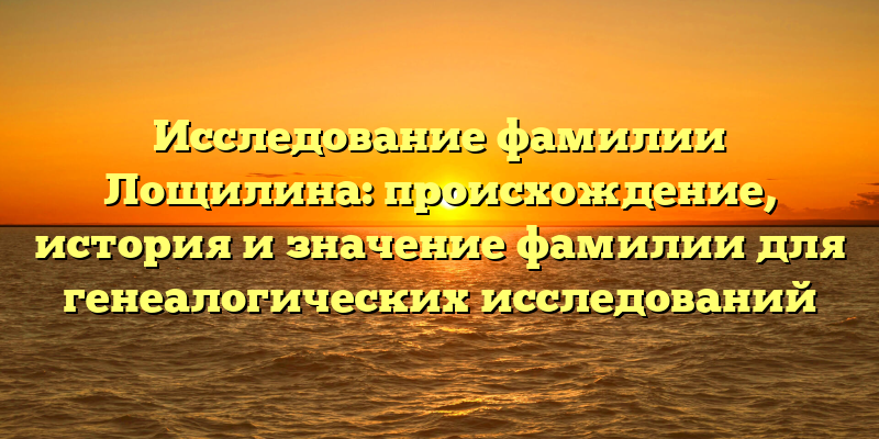 - История и происхождение фамилии Лощилина: ключевые факты для генеалогических исследований.