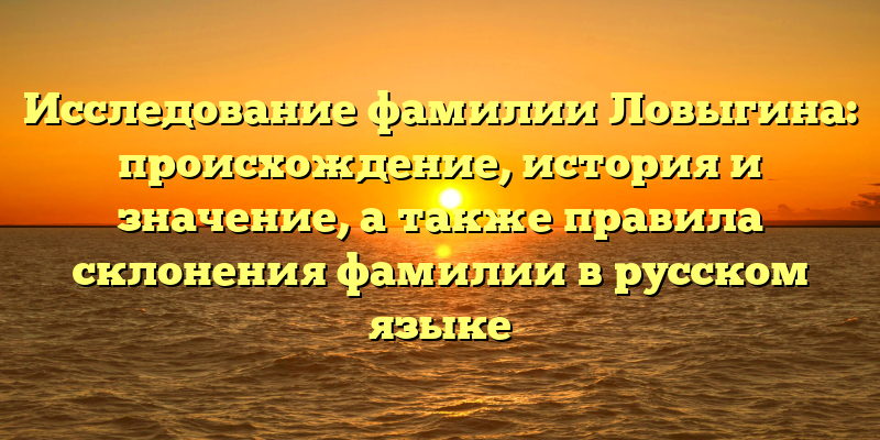 - Фамилия Ловыгина: происхождение, история и правила склонения — всё, что нужно знать!