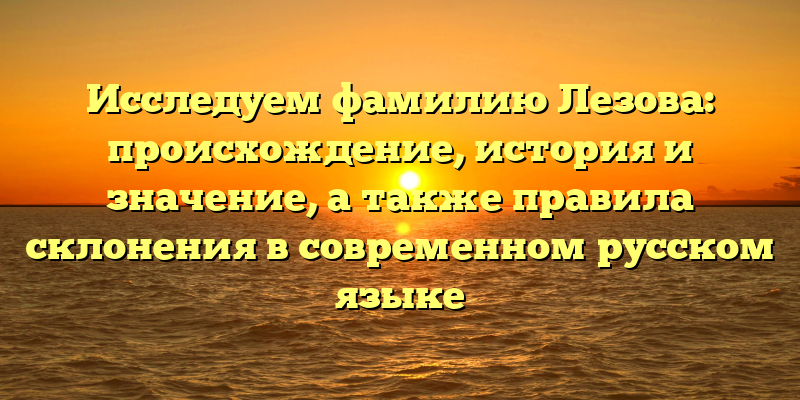 Фамилия Лезова: история, происхождение и правила склонения на современном русском языке — идеальный SEO-заголовок для данной статьи. Он содержит ключевые слова, отражает суть статьи и показывает читателю, что ожидать от неё.