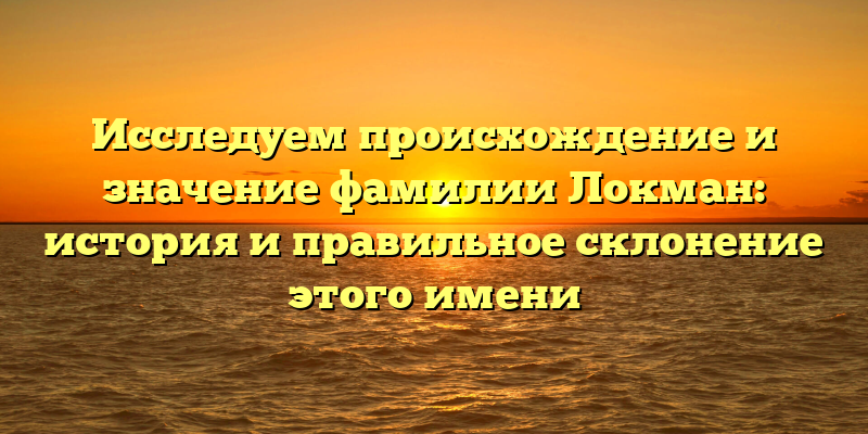 Изучаем историю и значения фамилии Локман: правильное склонение и происхождение имени — годный SEO-заголовок!