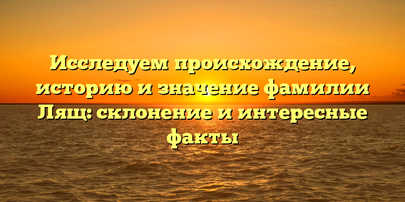 - Раскрываем тайны фамилии Лящ: происхождение, история и удивительные факты об этой фамилии
