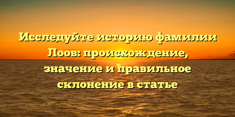 - Откройте тайны происхождения фамилии Лоов: исследуйте ее историю и правила склонения в нашей статье