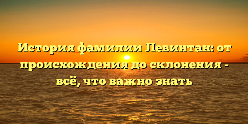 - Раскрываем тайны фамилии Левинтан: от истоков до грамматического склонения.