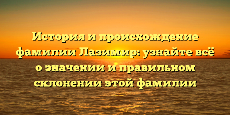 - Фамилия Лазимир: история, происхождение, значение, склонение — все ответы в одной статье