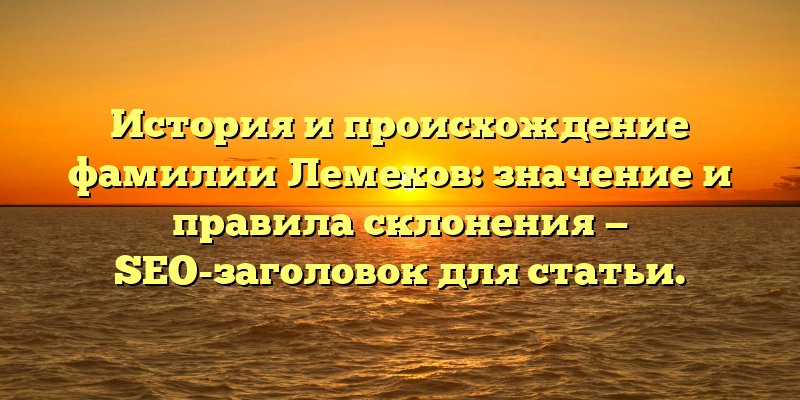 - Раскрываем тайны фамилии Лемехов: история, происхождение и склонение — SEO-заголовок для статьи.