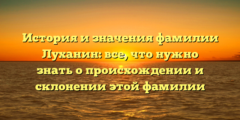- Происхождение фамилии Луханин