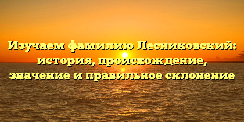 - Фамилия Лесниковский: история, происхождение, значение и техника правильного склонения в одной статье