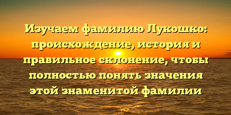 Рассказываем всю правду о фамилии Лукошко: от истории до правильного склонения.