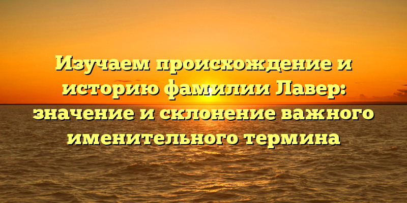 История фамилии Лавер: значение и склонение важного именительного термина — попытка проанализировать и узнать о фамилии Лавер на примере ее происхождения и значении.