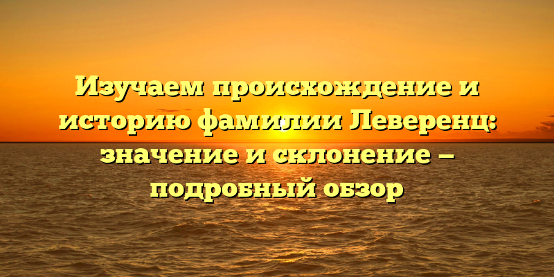Фамилия Леверенц: происхождение, история и значение — обзор с детальным анализом склонения