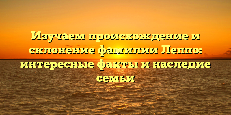 Детальное исследование происхождения и склонения фамилии Леппо: увлекательные открытия и история семейного наследия