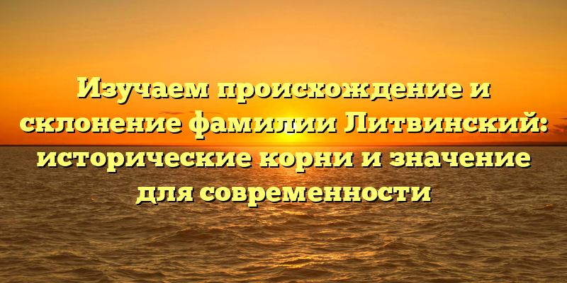 - Раскрытие тайн происхождения фамилии Литвинский: историческое значение и влияние на настоящее время