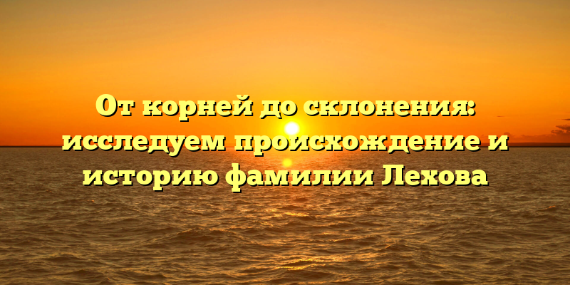 В этой статье мы погрузимся в исследование фамилии Лехова. Мы рассмотрим историю этой фамилии, начиная с ее корней, и проанализируем происхождение и некоторые особенности этой фамилии.