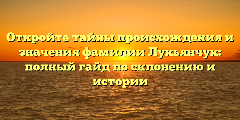 - Раскрываем тайны происхождения и значения фамилии Лукьянчук: всё, что нужно знать о её истории и склонении