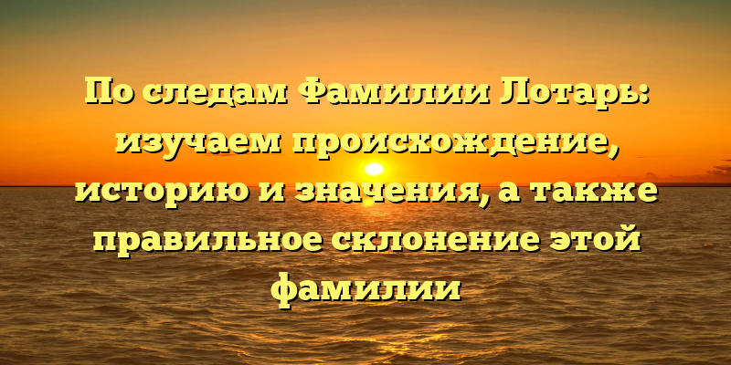 - В поисках своих корней: исследуем происхождение и историю фамилии Лотарь, а также узнаем о правильном склонении