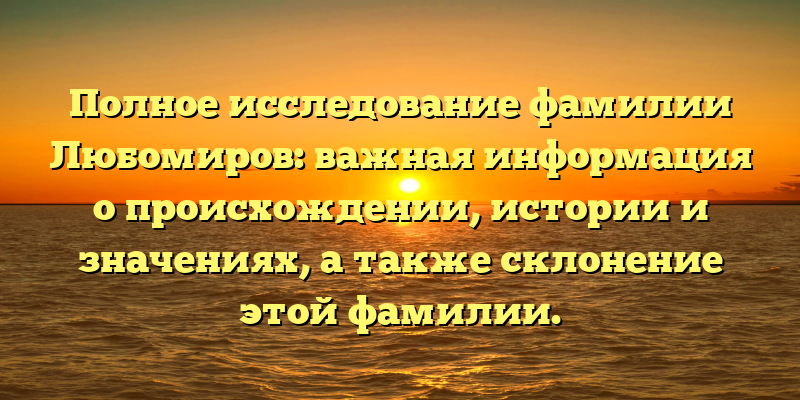 - Раскрываем тайны фамилии Любомиров: происхождение, история и значения, а также правильное склонение.
