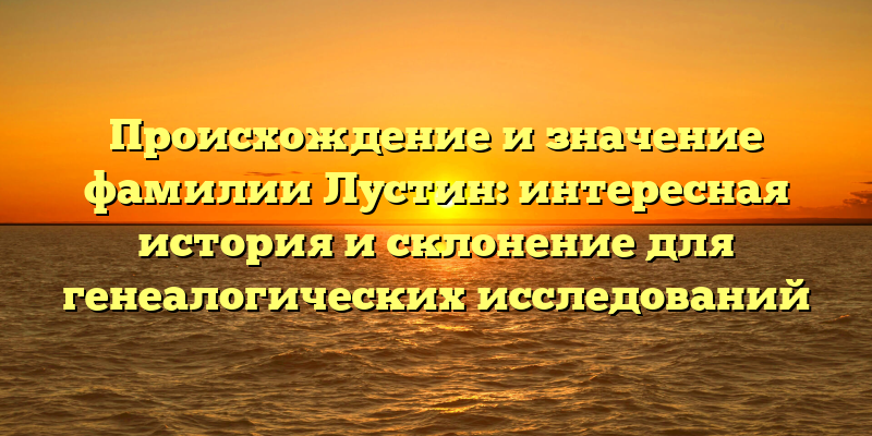 Изучаем происхождение и историю фамилии Лустин: ключевые моменты для успешных генеалогических исследований.